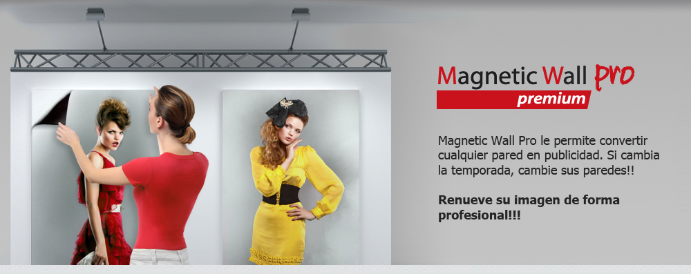 Ahora tenemos una solución para estos problemas, aplicando nuestro sistema de pared magnética. Materiales magnéticos son ampliamente utilizados en puntos de venta y todos somos conscientes del uso de imanes promocionales en nuestras neveras sosteniendo notas y fotografías. Sin embargo hasta ahora, para poder utilizar materiales magnéticos necesitábamos una base de metal.