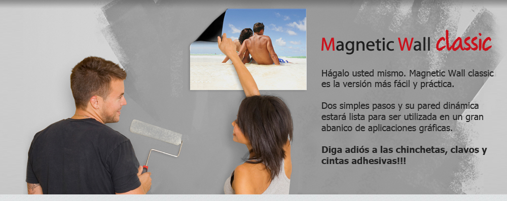Nuestro Promagnetic Imán funciona casi como magia. Simplemente coloque la láminas de imán impresas sobre la pared pintada y permanecerán en el lugar escogido hasta que decida reemplazarlos. Este tipo de material impreso puede ser instalado y cambiado por cualquier persona con facilidad, sin necesidad de contratar instaladores profesionales externos.